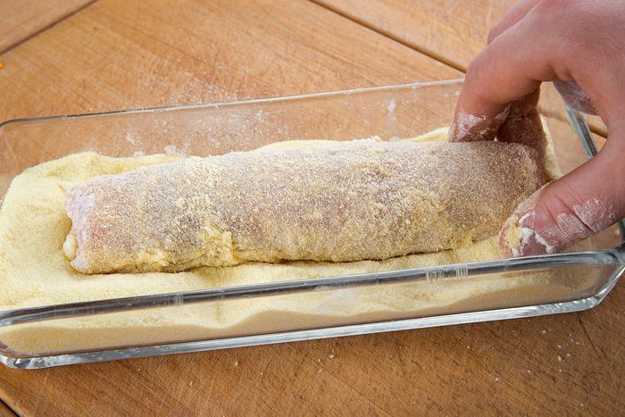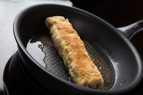 Разогреть сковороду с подсолнечным маслом, выложить рулеты и обжарить до готовности и золотистой корочки с двух сторон. Масло должно быть достаточно сильно раскалено для того, чтобы рулеты хорошо прожарились. Затем оставить на 10 минут в духовке, разогретой до 180°С.