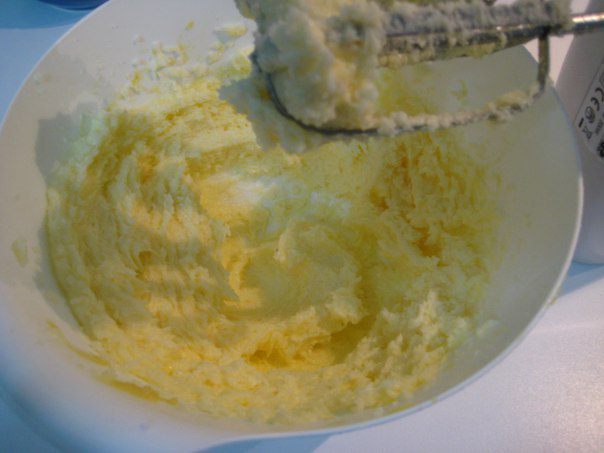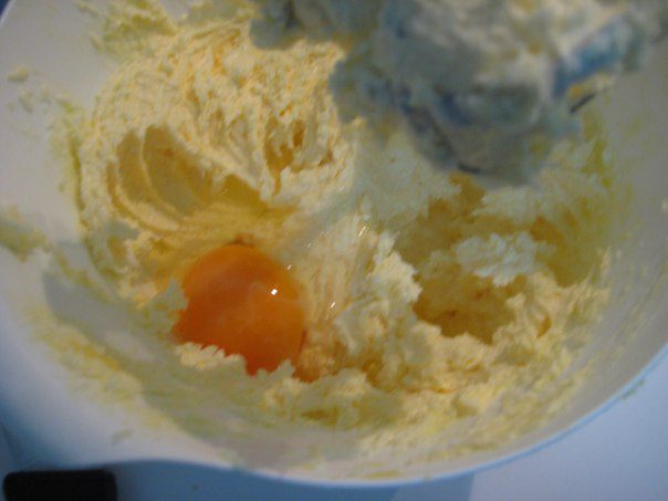 В масляную смесь по одному добавить яйца, не переставая взбивать.