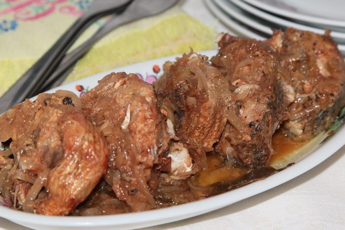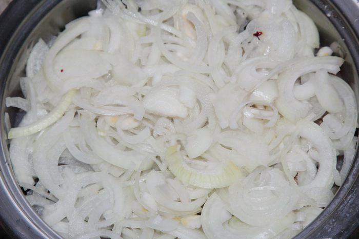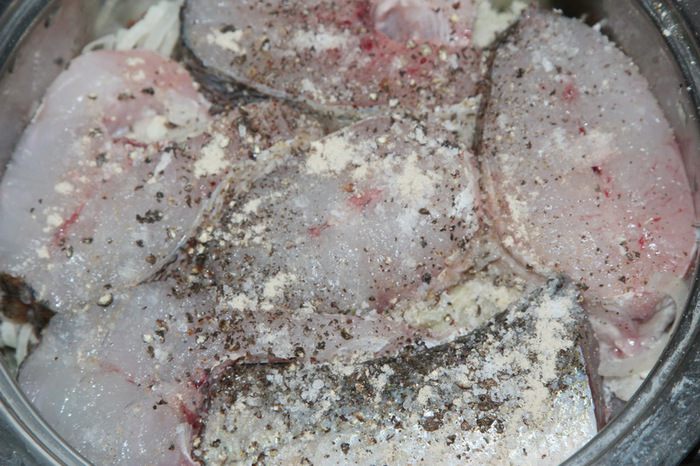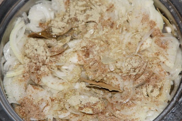 125 мл сухого белого вина выливаем в кастрюльку с рыбой. Ставим на огонь и доводим до кипения. Как только закипит, переставляем на самую маленькую комфорку, желательно еще и рассекатель огня поставить, накрываем крышкой и забываем о нашей рыбе до конца готовки. Следим только, чтобы она не кипела и не булькала. Должно быть очень легкое шевеление и все. Время готовки зависит от того, какого качества рыбу вы хотите получить, хотите ковыряться в косточках, или нет. В этот раз я готовила 8 часов, иногда готовлю меньше по времени. Когда как, но результат...! Кстати, шелуха тоже идет в еду: она становится мягкой. Но это уже, как захотите.