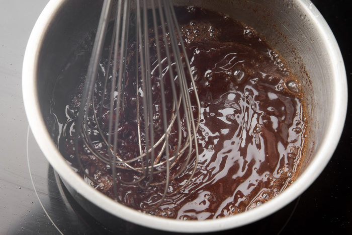 А пока делаем глазурь. Шоколад растапливаем в сливочном масле до полного растворения. Поливаем горячей глазурью холодный сырник. Отправляем в холодильник на 6–8 часов или на ночь.