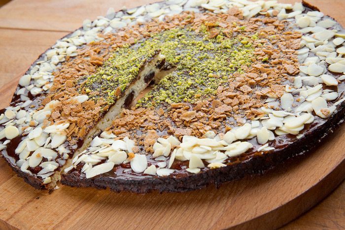 При подаче можно украсить сырник миндалем, фисташками и вафельной крошкой.