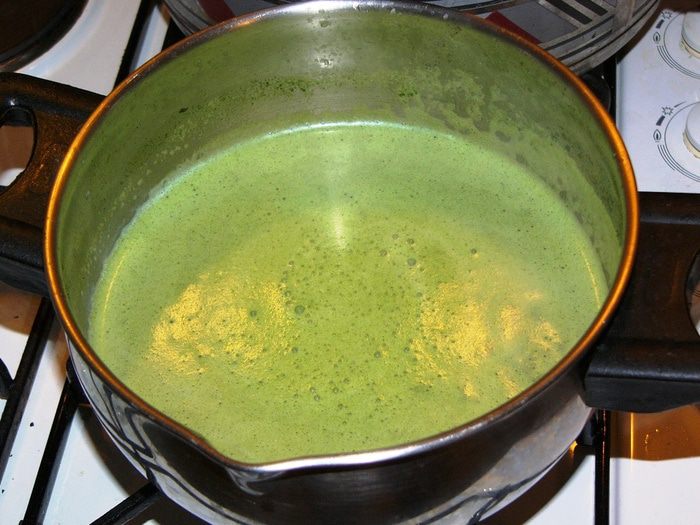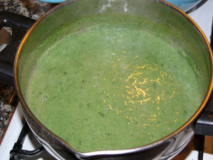Измельчить шпинат в пюре. Я использую погружной блендер.