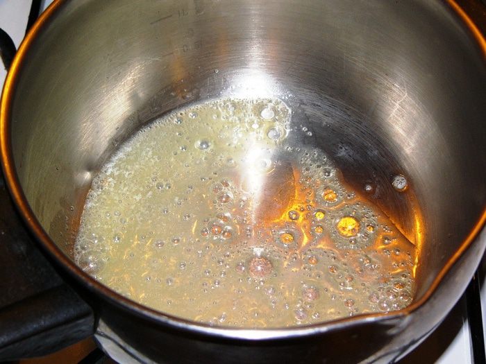 Добавить в кастрюлю примерно 5 стаканов воды (у меня 200 г).