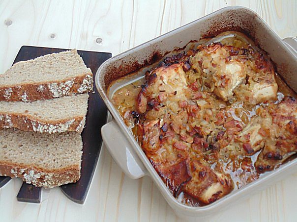 Влить вино, выпарить наполовину. Добавить воду, мед, горчицу, посолить, поперчить. Довести до кипения. Перелить в форму к мясу, накрыть фольгой и запекать 1,5 часа.