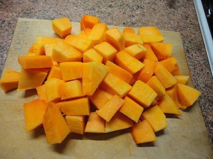 Тыкву нарезать довольно крупными кубиками. Я не люблю, когда тыква разваливается.
