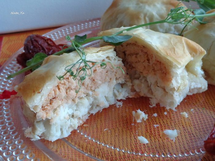 Теперь о вкусе. Представьте себе кусочки сочной трески под нежнейшим муссом и все это великолепие заключено в воздушное тесто фило, которое тает во рту. Блюдо не оставляет тяжести, а вызывает только восторг. Готовьтесь к тому, что все будут просить добавки, ведь хрустящая корочка и очень нежная рыба понравится каждому!