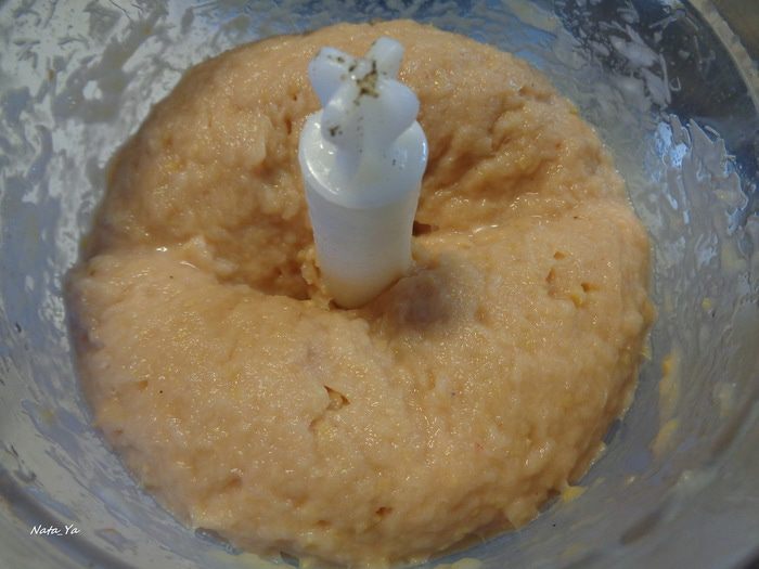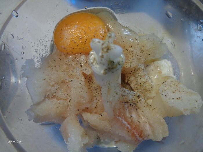 Оставшуюся треску положим в фуд-процессор. Добавим яйцо, соль и перец.