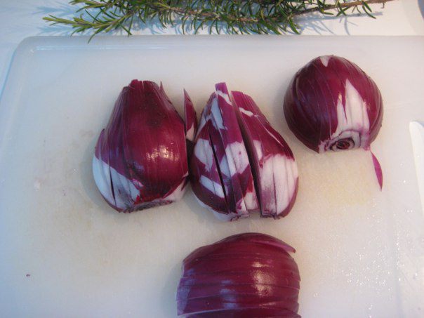 На сковороде, где жарилось мясо, обжарить лук на среднем огне, присыпать сахаром, когда лук станет мягким, влить бальзамический уксус, готовить еще пару минут.