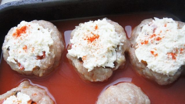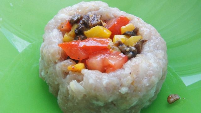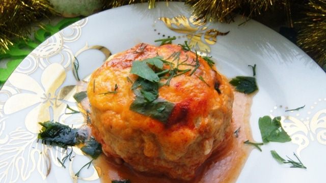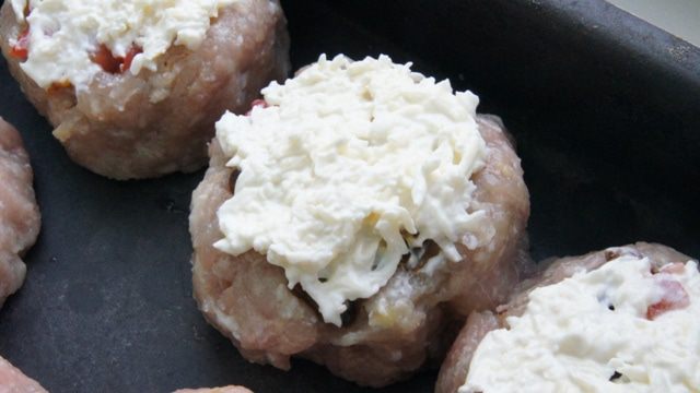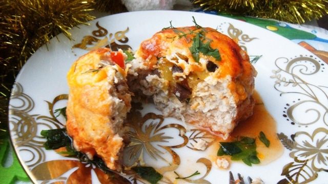 Мясные башенки с начинкой, запеченные под сырной шапочкой