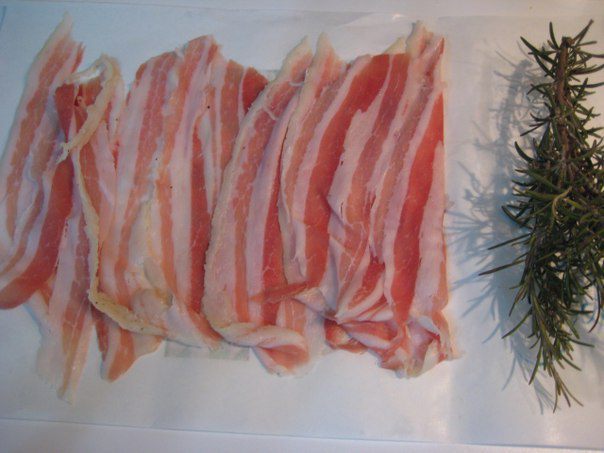 Форму для выпечки смазать оливковым маслом, положить рулетики, веточку розмарина. Если есть сливы, положить сливы, присыпать сахаром.