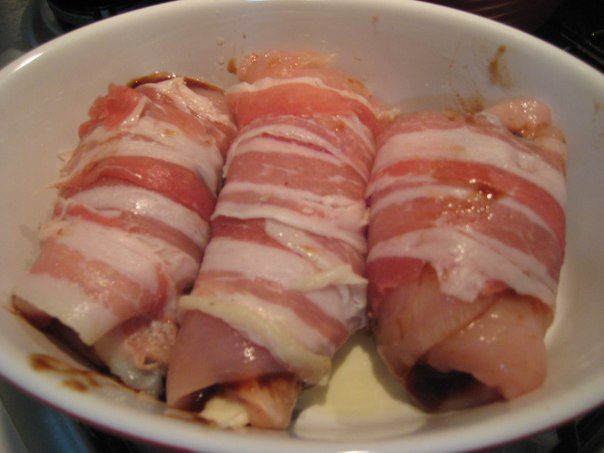 Вкуснейшее блюдо — сочная нежная куриная грудка, пикантный сыр, пряный сливовый соус и ароматный бекон! И готовится быстро!