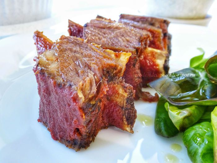 Совершенно забыла про этот рецепт. Но в канун праздников грех было его не вспомнить. Итак, аппетитнейшие говяжьи ребра от Джейми Оливера! Рецепт немного изменила под себя.