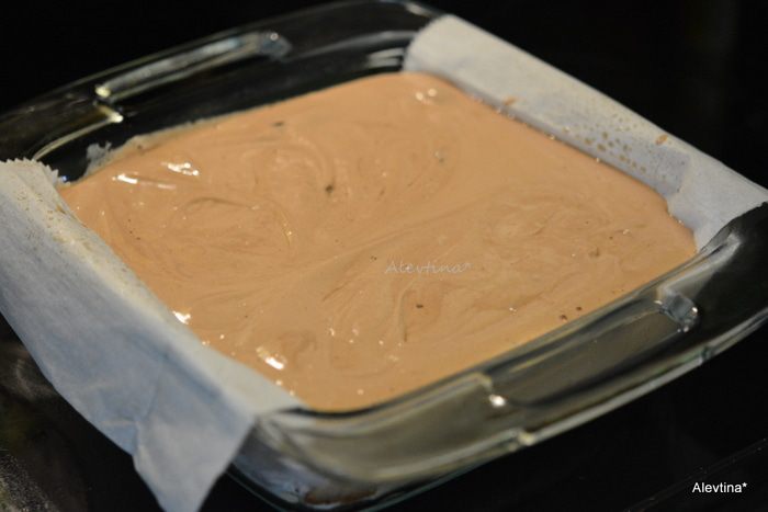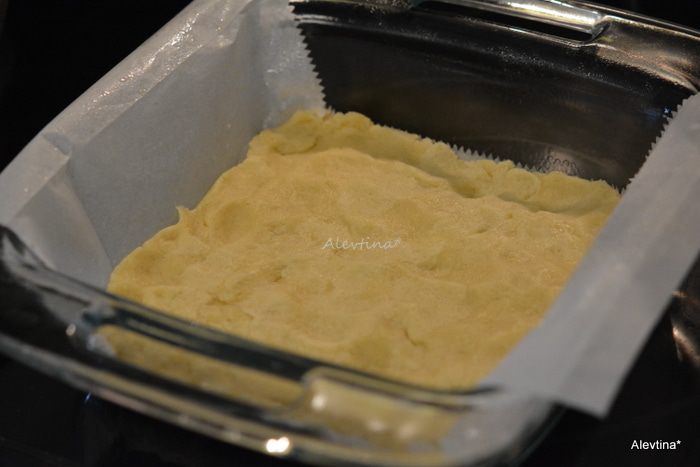 Выложить тесто в квадратную форму, прижать легонько пальчиками или спатулой. Поставить в разогретую духовку на 20 минут.