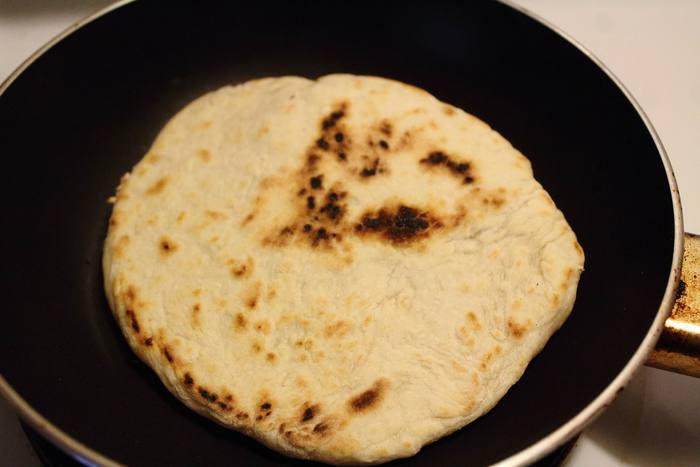 Жарить лепешки на сухой сковороде, на не самом большом огне примерно 3-5 минут с каждой стороны.