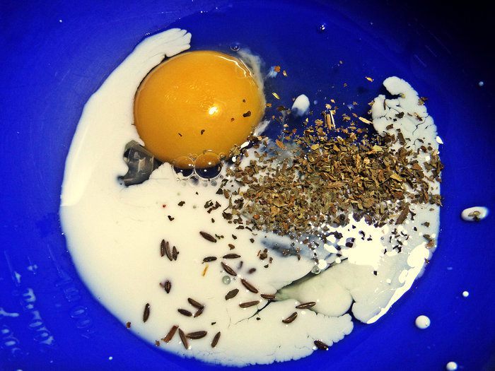 Готовим яичную "болтушку". Яйцо, молоко, специи...