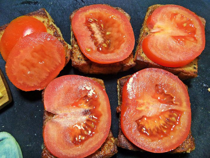 Накрываем гренку помидором.