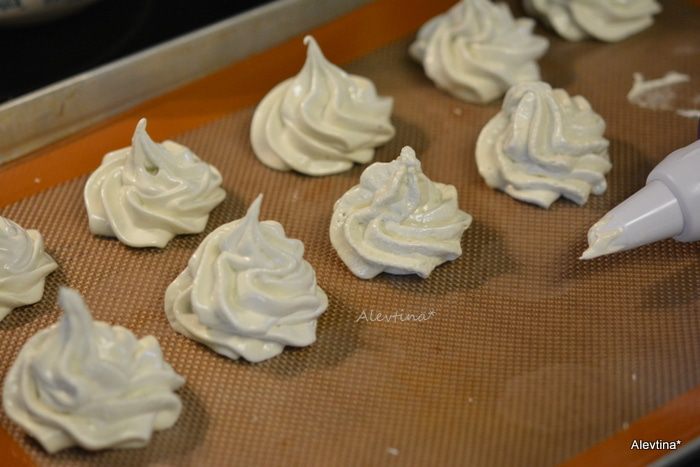 Выдавливаем на приготовленный противень с бумагой для выпечки как вам нравится. На расстоянии друг от друга. Ставим в духовку на 1,5 часа примерно.