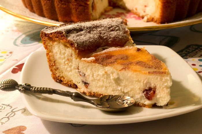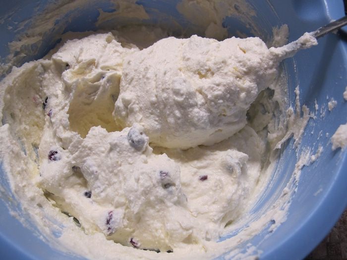 Затем добавляем вяленую вишню или изюм, по желанию.