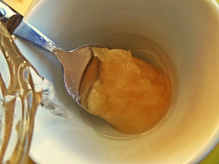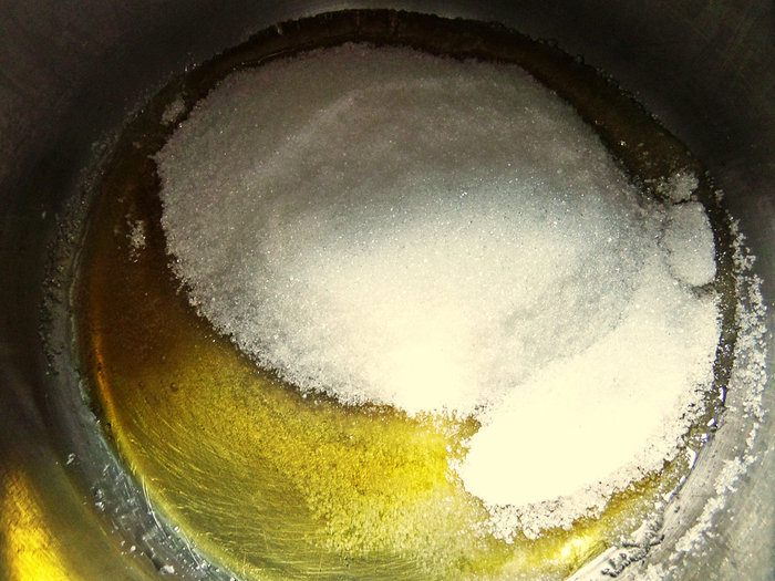 Вот так сахар начинает плавиться, не трогаем пока его!