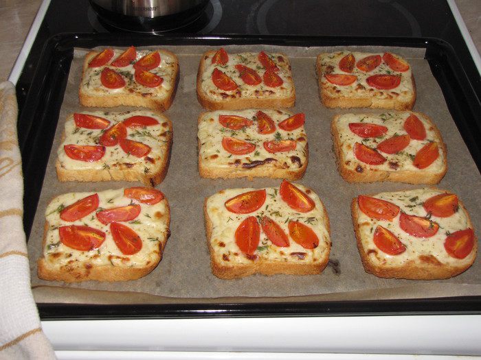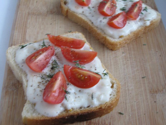 Вкуснейший хрустящий бутерброд с запеченным сырным соусом, помидорками черри, французской горчицей и ароматом тимьяна! Очень хорош на затрак!