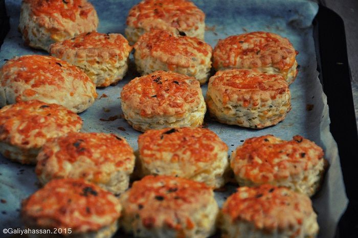 Смазать сконы болтушкой из смеси желтка и молока, посыпать сыром и отправить выпекаться 10-15 минут.