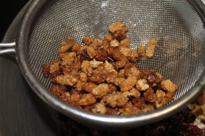 Шелковицу (или любую другую сушеную ягоду), промыть и добавить в чашку.