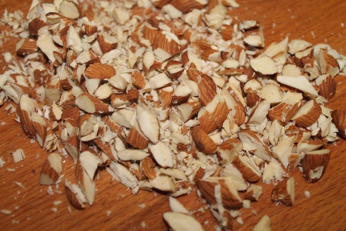 Миндаль порубить не мелко.