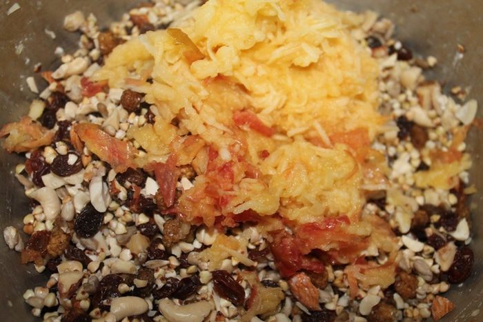 Изюм промыть и добавить к общей смеси.