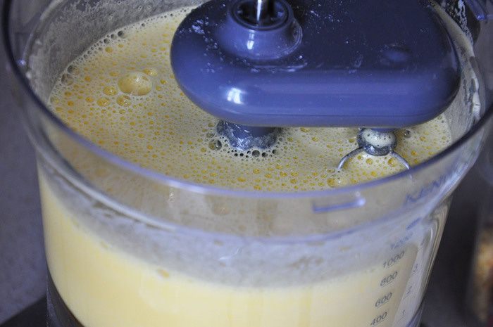 Добавить белки аккуратно, в несколько приемов, к общей массе.