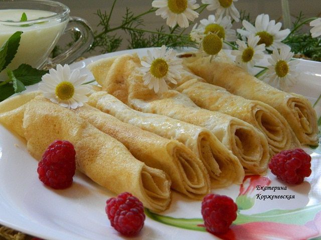 Очень ароматные, тонкие блинчики! Прекрасно сочетаются с ягодами и соусом. И так же хороши в самостоятельном виде!