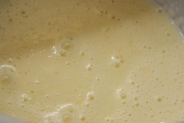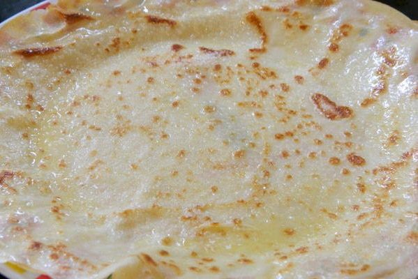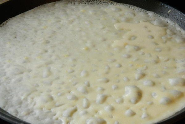 Разогреть сковороду и смазать растительным маслом. Выпекать тонкие блинчики с двух сторон до подрумянивания.